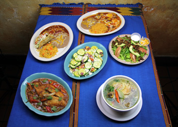 ..- Choice of Beef, Chicken or Shrimp fajitas seasoned and cooked to perfection with fresh Onion, Bell pepper and tomato served with Mexican style rice & refried beans, Green Salad, and Tortillas.